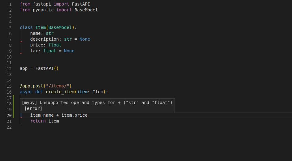 The Union in Union[str, None] is not used by FastAPI, but will allow your editor to give you better support and detect errors.